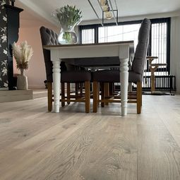 Nieuw in ons aanbod, een echte houtenvloer die tegen een stootje kan en onderhoudsvriendelijk is.