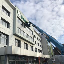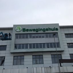Het statige hoge gebouw aan het station in Hasselt van ACV-Limburg wordt voorzien van hun nieuwe naam en logo, Bewegingshuis. BENEflex plaatste de 18 lange lichtreclame in doosletters met ingebouwde LED-verlichting. Een hele klus met een mooi resultaat én tevreden klant.