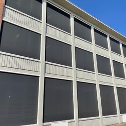 De grote imposante ramen, allen zuiden georiënteerd, zorgen voor een globale opwarming van het ganse schoolgebouw. De beste oplossing hier was op de zon, vóór ze het glas raakt, te voorzien van een zonwering. Door de grote afmetingen waren onze windvaste ritsscreens hier de perfect oplossing. Per lokaal en met een Somfy zonnecel wordt alles automatisch geregeld. De lichtinval is ook verbeterd waardoor smartboards geen probleem meer vormen bij overmatig zonlicht.